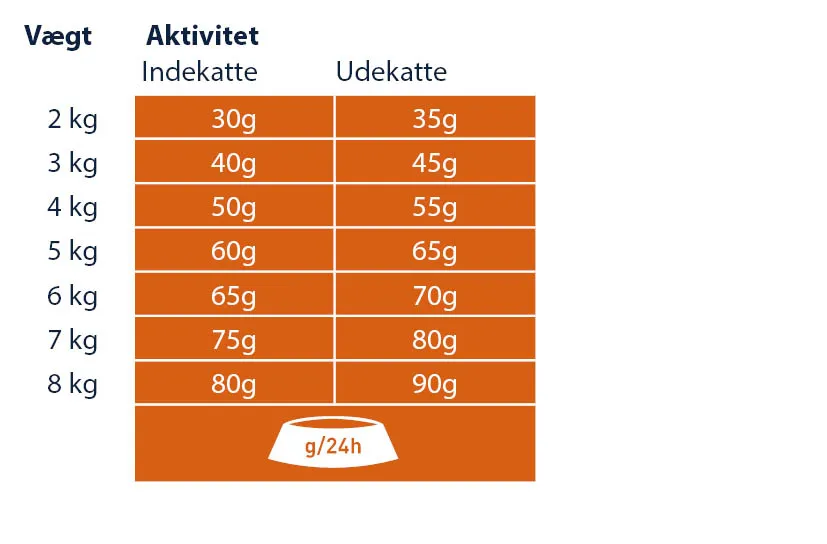 Anbefalet daglig fodermængde (g/dag):