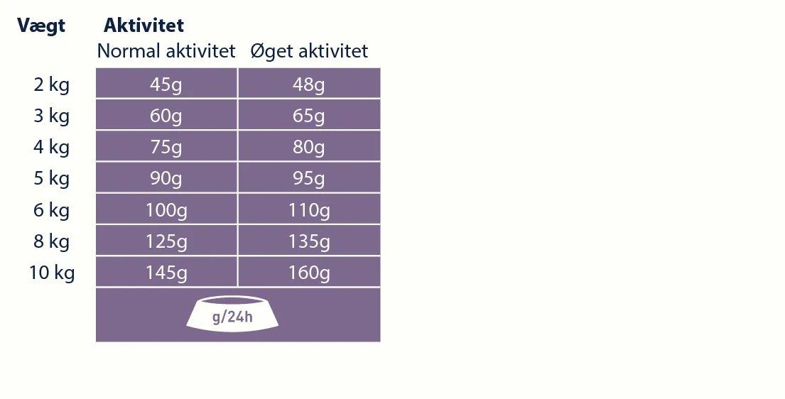 Anbefalet daglig fodermængde (g/dag):