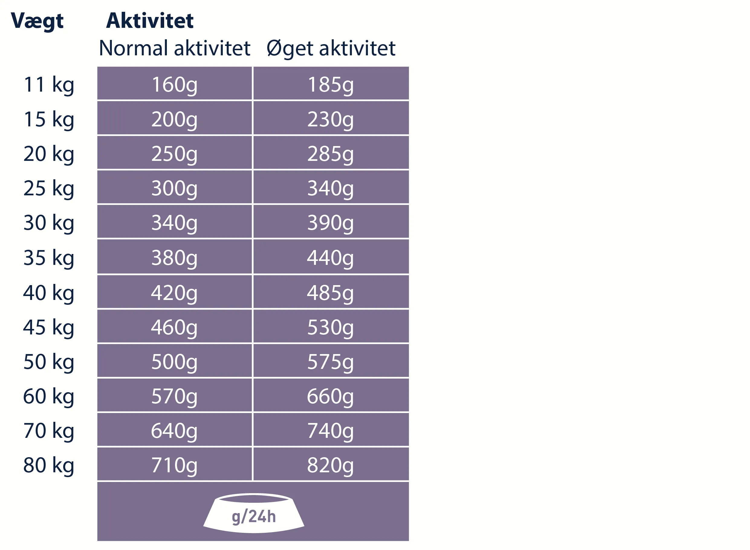 Anbefalet daglig fodermængde (g/dag):