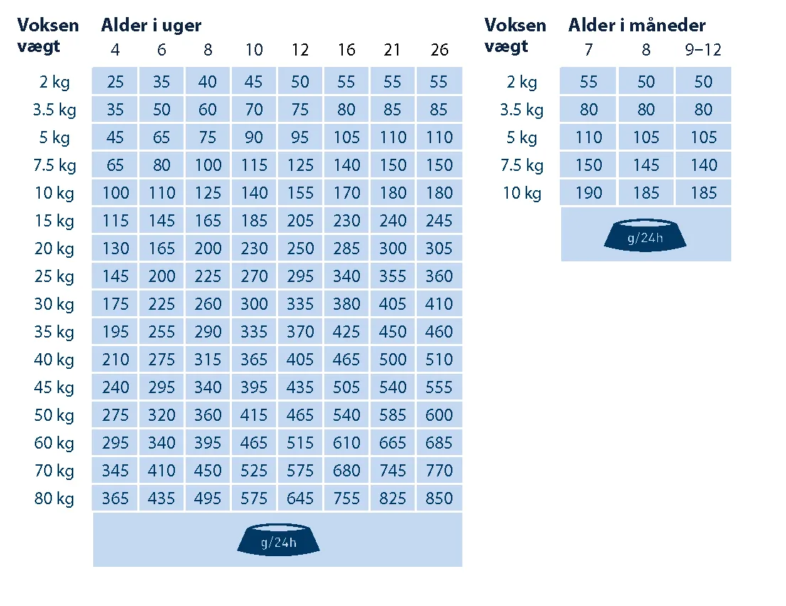 Anbefalet daglig fodermængde (g/dag):