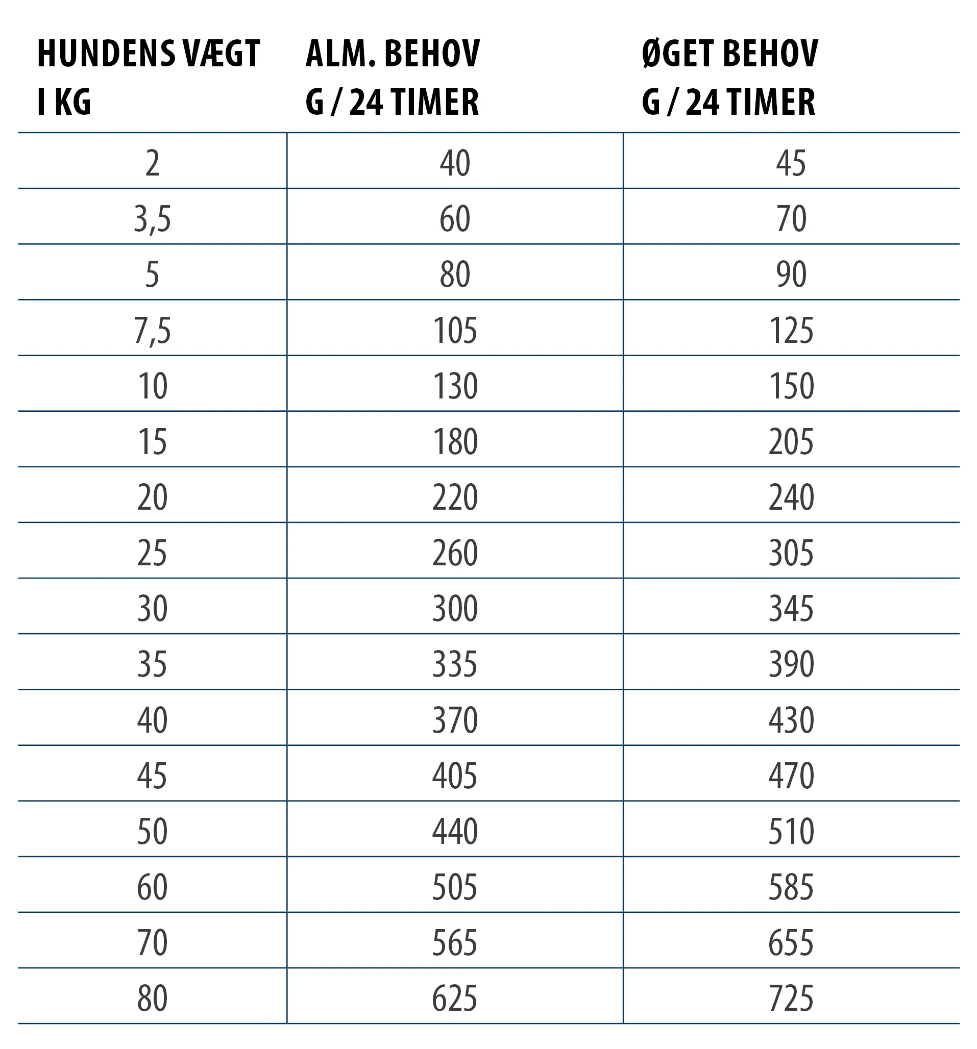 Anbefalet daglig fodermængde (g/dag):