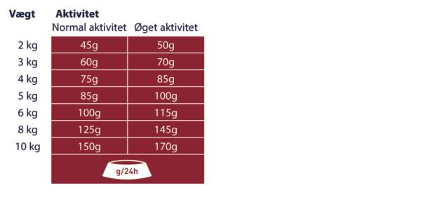Anbefalet daglig fodermængde (g/dag)