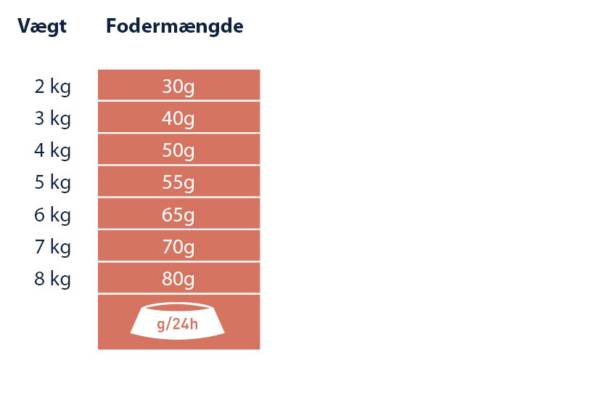 Anbefalet daglig fodermængde (g/dag):