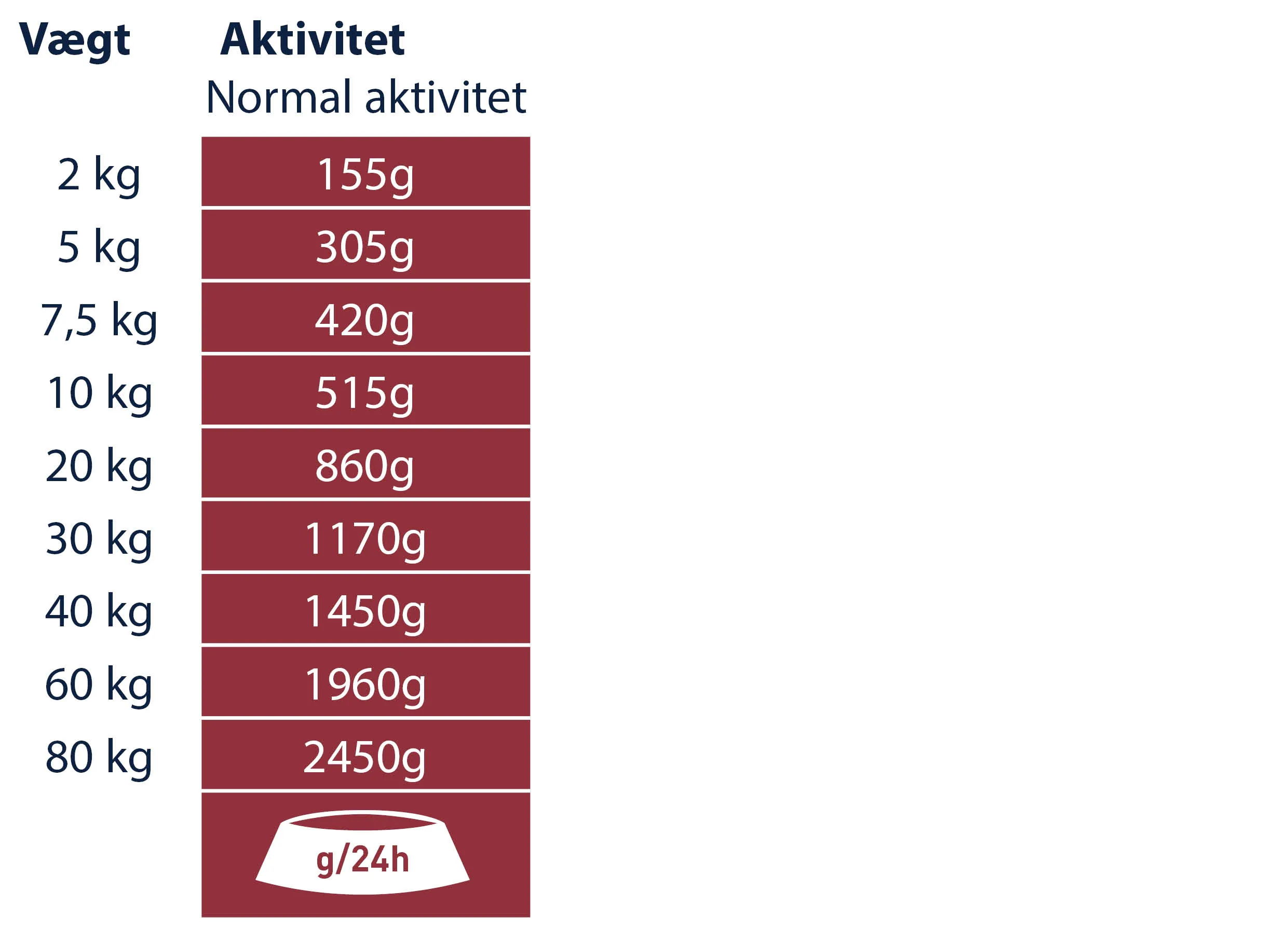 Bemærk: Vådfoder kan gives rent eller blandes med Happy Dog Flocken Mixer. Specifikationerne er vejledende. Individuelle behov afhænger af alder, race, vægt og aktivitetsniveau. Fodres ved stuetemperatur. Tilbyd altid frisk drikkevand.