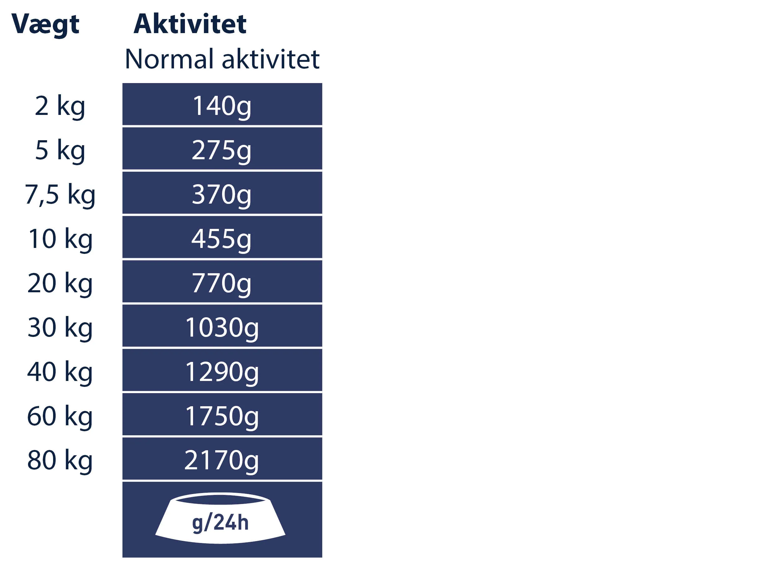 Bemærk: Vådfoder kan gives rent eller blandes med Happy Dog Flocken Mixer. Specifikationerne er vejledende. Individuelle behov afhænger af alder, race, vægt og aktivitetsniveau. Fodres ved stuetemperatur. Tilbyd altid frisk drikkevand.